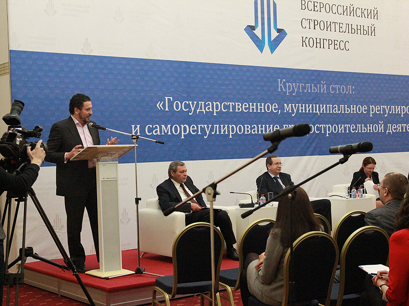 1 декабря 2011 года в «Крокус Конгресс Центре», состоялся I Всероссийский строительный конгресс «Инвестиционно-строительная деятельность в инновационной экономике России». Организаторами конгресса выступили НП «СРО «АЛЬЯНС СТРОИТЕЛЕЙ», Московская городская дума, Omni Consulting Group, Государственная академия специалистов инвестиционной сферы (ГАСИС). Конгресс стал заметным событием в жизни строительного сообщества. В нем приняли участие первые лица более 300 российских крупных строительных компаний, руководители национальных объединений и представители власти. Они встретились на пленарном заседании и на трех круглых столах конгресса. В начале пленарного заседания с приветственным словом к собравшимся обратился вице-президент НОП, Президент НП «СРО «АЛЬЯНС СТРОИТЕЛЕЙ» и председатель оргкомитета конгресса — Александр Халимовский. Главными темами пленарного заседания стали: эффективность и безопасность в строительстве, саморегулирование и инвестиционное обеспечение в градостроительстве. Председатель Комитета Госдумы по строительству и земельным отношениям Мартин Шаккум отметил, что экономика страны зависит способности строительной отрасли обеспечить спрос со стороны государства, бизнеса и граждан на новые мощности, дома и объекты. По словам следующего выступающего, исполнительного директора Российского союза строителей (РСС) Эдуарда Дадова, «взаимное насыщение информацией имеет очень большое значение для всей отрасли в целом». По его словам, предлагаемые нормативные акты Правительство теперь отдает на экспертизу Российскому союзу строителей, который в свою очередь предоставляет возможность высказаться профессионалам. В ходе пленарного заседания Депутат Московской городской Думы — Иван Новицкий поведал о состоянии инвестиционного климата градостроения, а Леонид Кушнир — президент НОИЗ , рассказал о плюсах саморегулирования. «Стратегия новой индустриализации: дорожная карта» — такой доклад представил Вице-президент ООО «Деловая Россия» Николай Остарков. Виталий Широков — председатель Комитета по предпринимательству в жилищном и коммунальном хозяйстве ТПП России, рассказал про новые парадигмы в жилищном строительстве, а вице-президент НАМИКС Сергей Милушкин — об инструментах создании благоприятного инвестиционного климата. Отличительной чертой конгресса «Инвестиционно-строительная деятельность в инновационной экономике России» стал формат круглых столов, которые впервые в отрасли прошли в виде интеллектуальных дискуссий. Круглый стол № 1 — «Государственное, муниципальное регулирование и саморегулирование строительной деятельности» модерировал Максим Шевченко. Участники дискуссии также пришли к выводу, что для квалифицированной и эффективной работы в системе СРО должны проводиться обучающие семинары, которые будут рассматривать вопросы госзаказа в строительстве, учить работе с финансовыми институтами, информировать о работе с правилами и стандартами, разрабатываемыми на уровне национальных объединений и некоммерческих партнерств. Размышляя о путях решения существующих проблем в государственном и муниципальном регулировании, эксперты и делегаты в зале озвучили разные направления, которые в той или иной мере определили «болевые точки» системы: — Больше внимания следует уделить ин