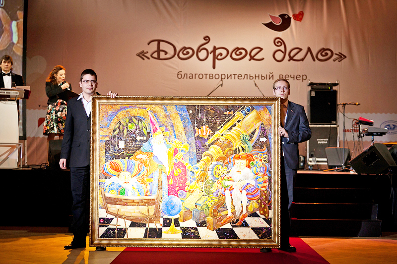 Начальная сумма за каждый лот была определенной: 50 тысяч рублей. Самая азартная борьба между присутствующими разгорелась за картину Петра Лизунова «Корабль мудрецов», которую художник нарисовал специально для благотворительного вечера. Картина была предоставлена НП «СРО «АЛЬЯНС СТРОИТЕЛЕЙ». Этот лот «ушел с молотка» за 410 тысяч рублей. Остальные лоты также пользовались большой популярностью. Так,