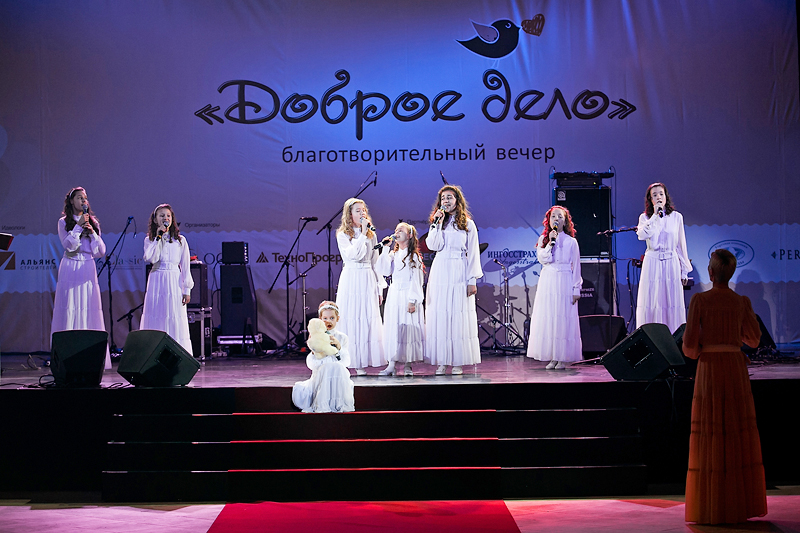 На протяжении всего вечера для гостей выступали дети из хора Radio Classic Angels. «Маленькими ангелами» называет их Елена Уварова и многие собравшиеся, слушая их выступление, согласились с ней.