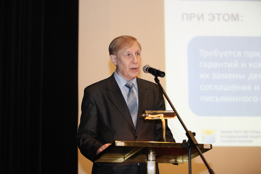 Тему продолжил Владимир Солдунов — начальник отдела политики охраны труда Департамента условий и охраны труда Министерства труда и социальной защиты РФ. Он подробно рассказал об основных положениях законопроекта «О специальной оценке условий труда», который в октябре этого года был принят Госдумой в первом чтении. Основные изменения коснутся не только самого процесса оценки условий труда, но и ответственности за нарушения законодательства и мотивации работодателей. В частности, в случае обеспечения работодателем безопасных рабочих мест он может быть освобожден от уплаты страховых взносов по дополнительным тарифам в Пенсионный фонд РФ.